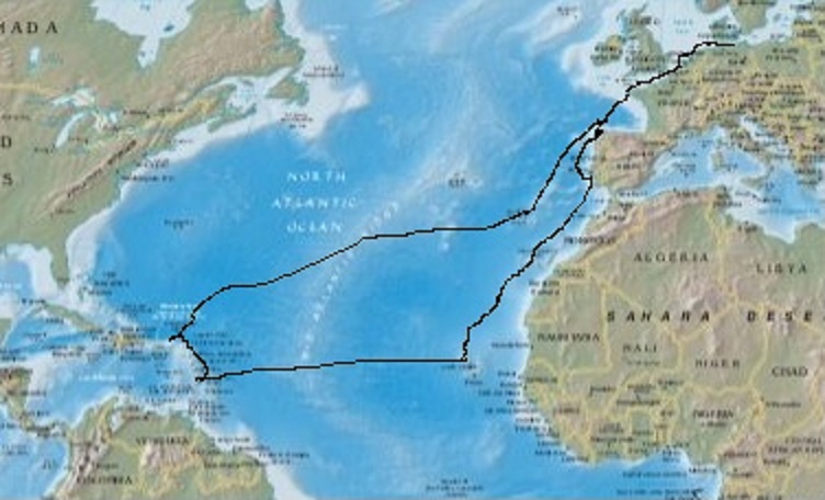 Lübeck - NOK - Standing Mast Route - Englische Südküste - Brest - Biskaya - La Coruna - Lissabon - Kanaren - Cap Verden - Karibische Inseln - Azoren -